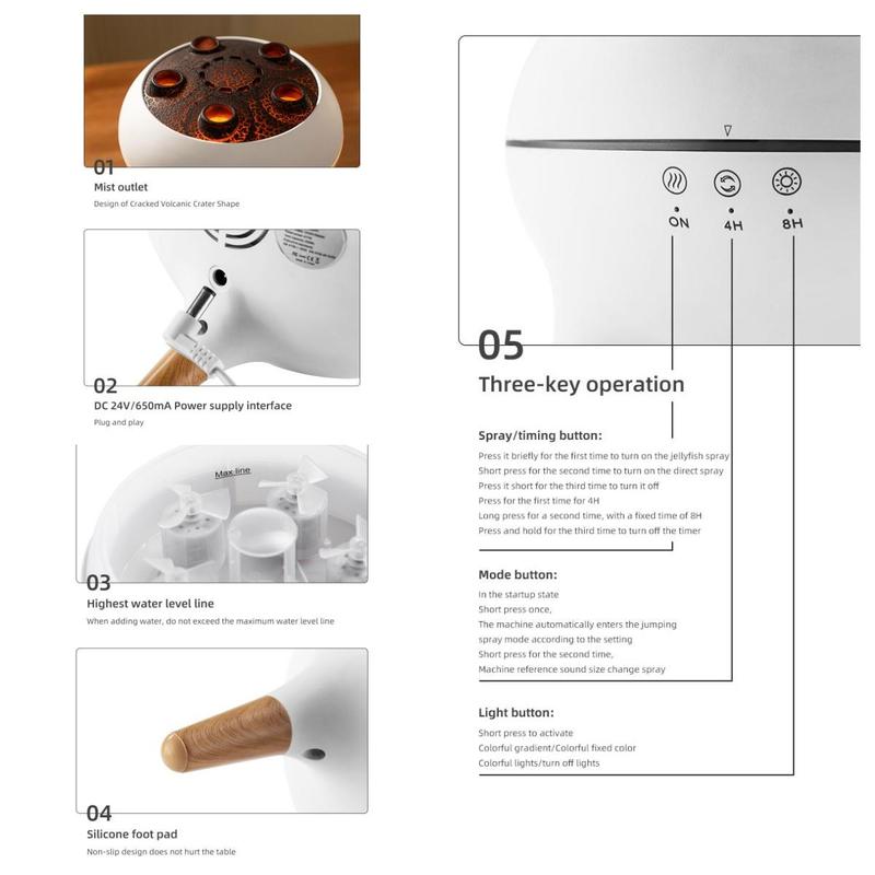 Portable Creative Jellyfish Design Air Humidifier, Remote Control Dynamic Fragrance Mist Maker, Decorative Night Light for Home Office
